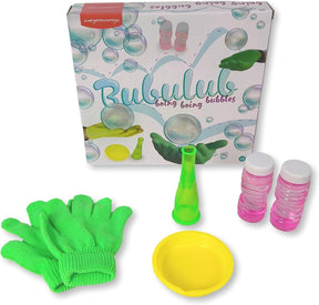 - استمتع مع أطفالك بصنع فقاعات الصابون مع هذه المجموعة الكاملة التي تتضمن كل ما تحتاجه: زجاجتان من الصابون، ووعاء صغير لسكب السائل، وأنبوب بلاستيكي وقفازين خاصين للعب بالفقاعات دون أن ينكسر.