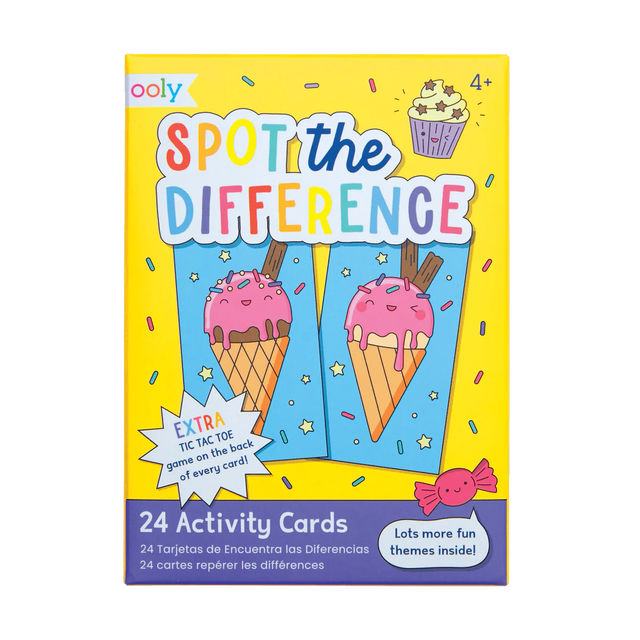 OOLY’s adorable Spot the Difference puzzle book for kids is a super fun way for kiddos to keep busy. It features 24 fun themes like cookies and milk, outer space, and ice cream cones—sure to challenge your child’s observation skills. Each spot the difference puzzle also includes a tic-tac-toe game on the back! These two cookies are identical… or are they? Only you can Spot the Difference in this sweet puzzle book for kids. It features 24 different whimsical themes, like two ice cream cones sprinkled with slight differences and an outer space design starring minor galactic changes. On the back of each spot the difference puzzle sheet is a game of tic-tac-toe, so you can challenge your kids to some X’s and O’s. This spot the difference book is a great addition to a birthday gift or a fun activity for kiddos while you’re on the go!